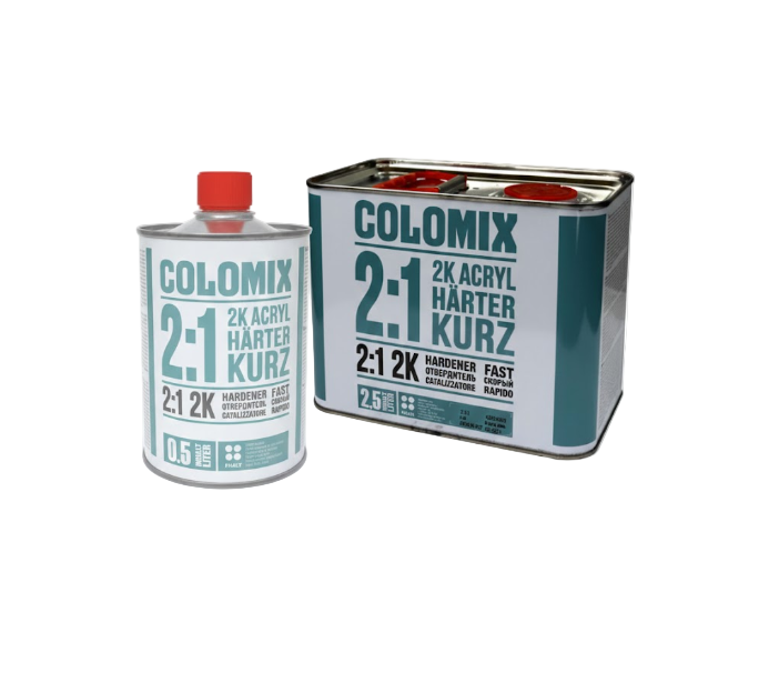 Ātras reakcijas cietinātājs Colomix 2K lakām ar 2+1 sajaukšanas attiecību. Nodrošina strauju sacietēšanu, saīsinātu žūšanas laiku un optimālu pārklājuma spīdumu. Ideāli piemērots nelieliem lokālajiem remontiem un darbiem zemākās temperatūrās, kur nepieciešama ātra procesa norise.