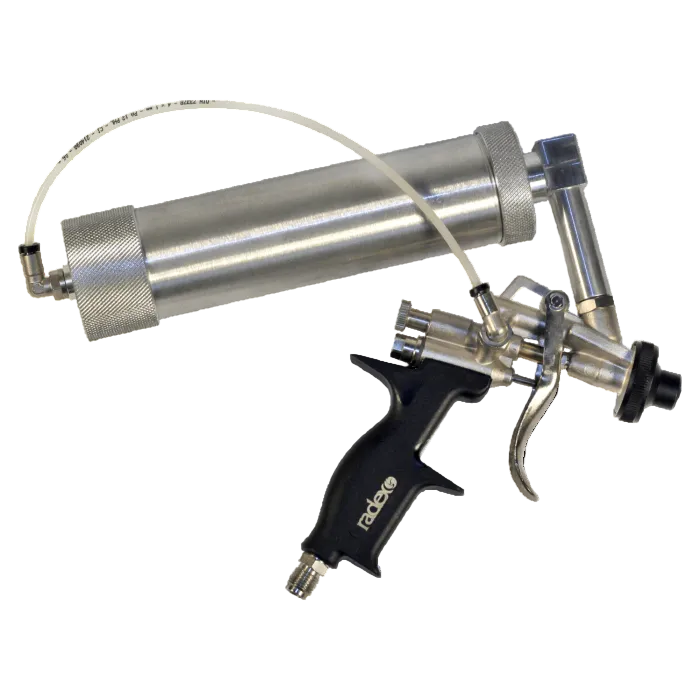 Profesionāla, universāla pneimatiskā pistole, piemērota hermētiķu un līmvielu, kā arī izsmidzināmu hermētiķu uzklāšanai no standarta 310 ml plastmasas kārtridžiem.