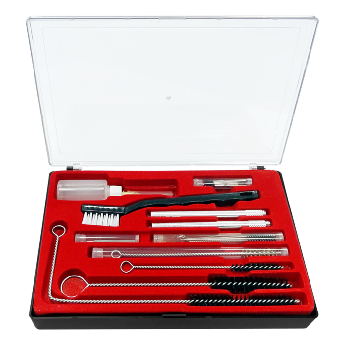 Komplektā ir 22 nepieciešami rīki rūpīgai krāsošanas pistoļu tīrīšanai un apkopei. Iepakots izturīgā plastmasas kastē, tas palīdz noņemt krāsas atlikumus un uzturēt aprīkojumu labā darba kārtībā.